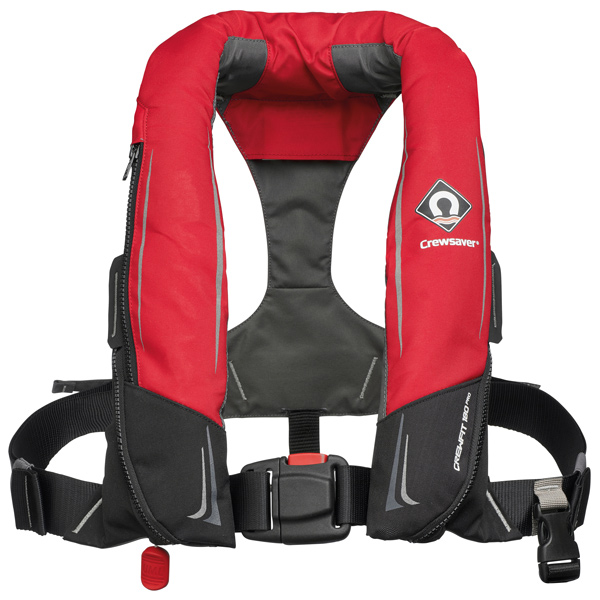Crewsaver Crewfit 180N Pro Red Crewfit 180 Pro er trods sin større volume en kompakt vest, designet med 3D teknologi. Den luftfyldte lunge har en specielt udformet støtte til hagen der bidrager til frie luftveje og giver et højere flydeleje i vandet.